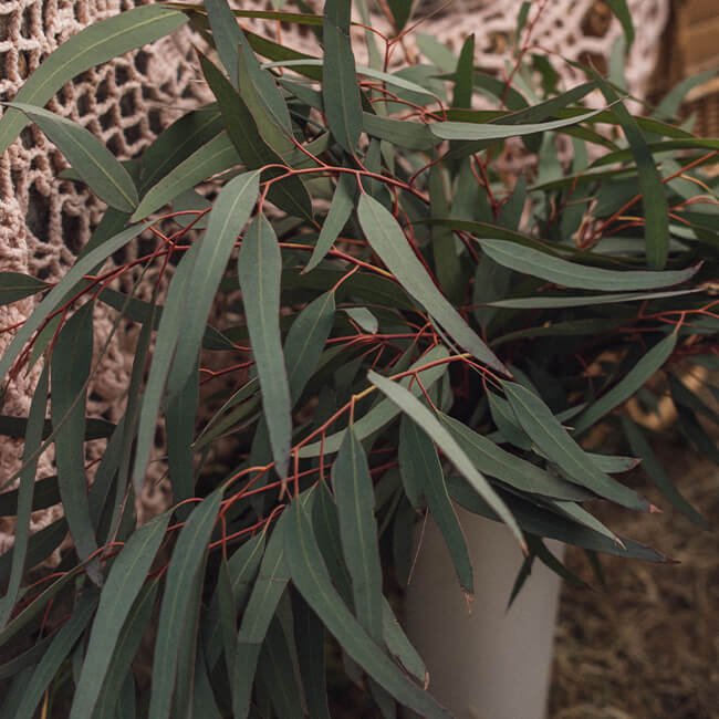 - This aromatic eucalyptus has spear-shaped leaves that run the length of each stem to create a stunning cascading look.